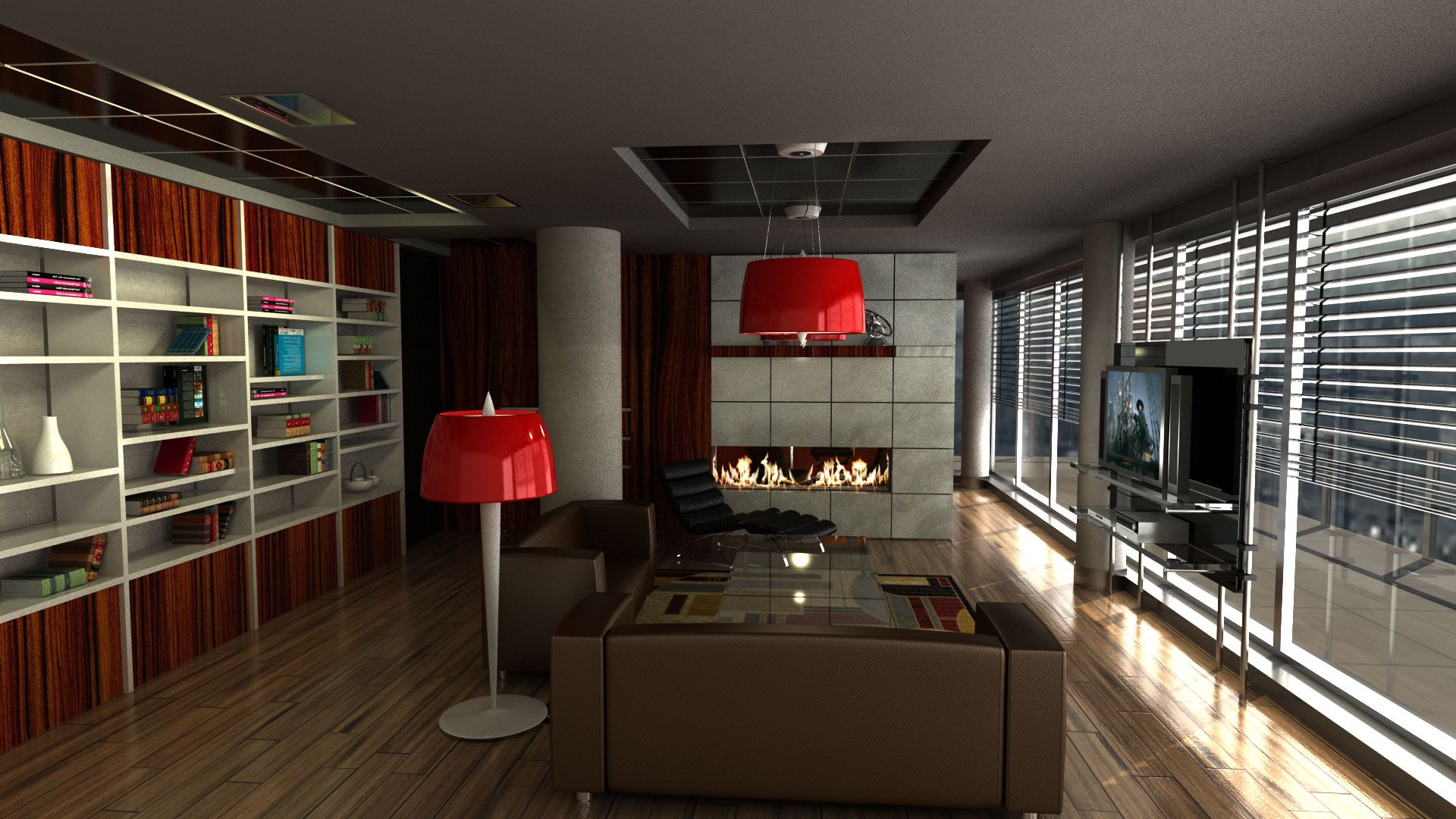 The chandelier and lamp stand are used to mark the central space of the area. Against the backdrop of dutiful and calm I’ve chosen color red to create an island accent which tones the entire space.